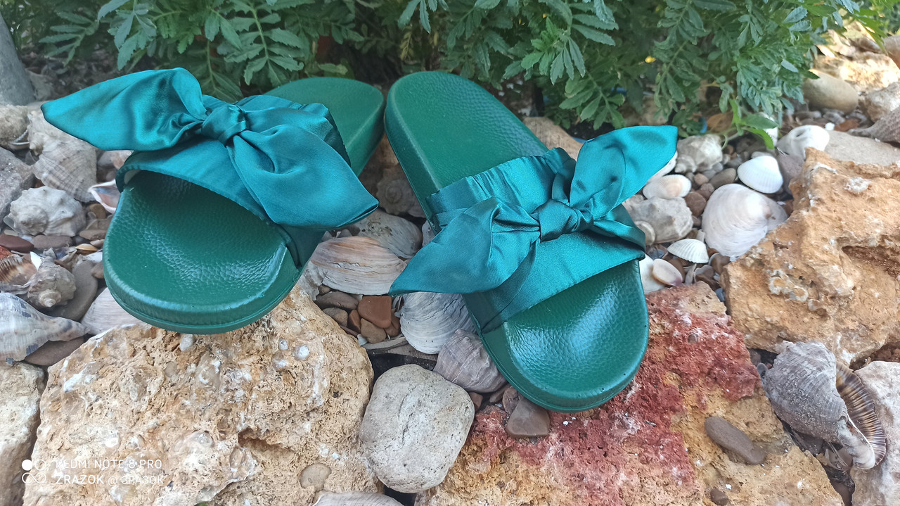 ЗНИЖКА! 36р (22.5 - 23см) Puma Fenty тапочки шльопанці з бантами смарагдово зелені