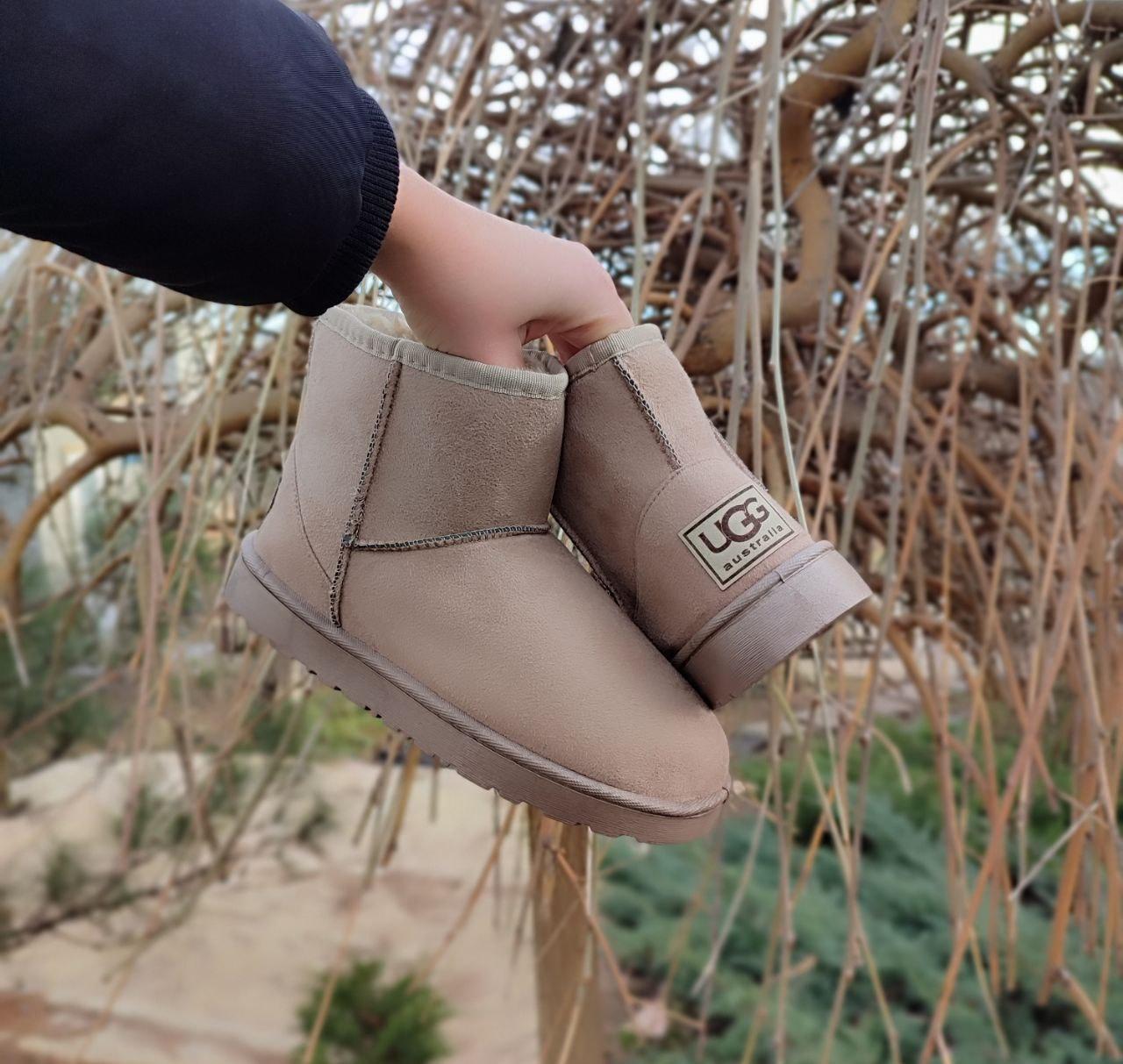 Угги UGG бежевые экозамшевые светлые короткие теплые зимние полусапожки ботиночки унисекс